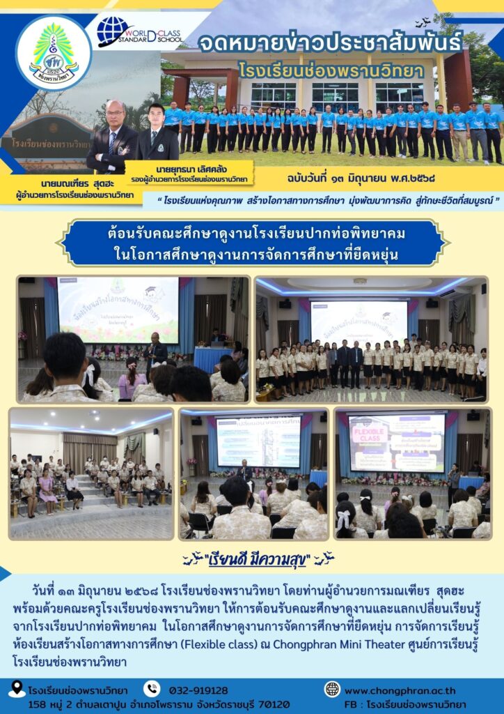 รูปภาพประชาสัมพันธ์ ต้อนรับคณะศึกษาดูงาน โรงเรียนปากท่อพิทยาคม Posted on 24 กรกฎาคม 2025 by chpschool 24 ก.ค. chpschool กิจกรรมศึกษาดูงาน ณ โรงเรียนหอพระ นิเทศห้องเรียนคุณภาพและระบบนิเวศการเรียนรู้