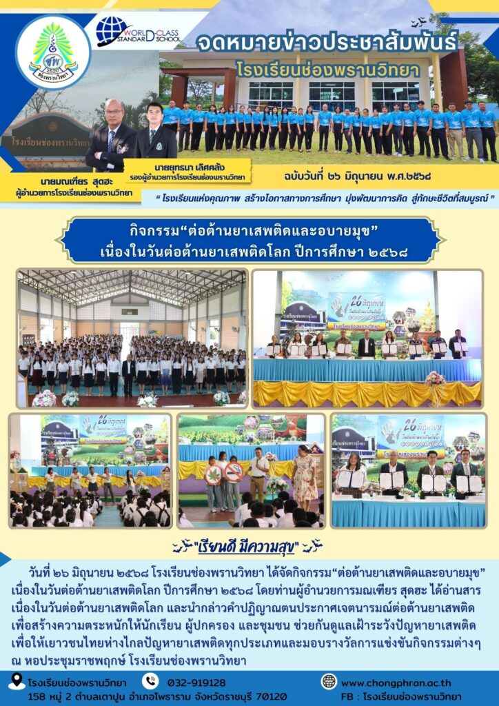 รูปภาพประชาสัมพันธ์ กิจกรรม “ต่อต้านยาเสพติดและอบายมุข” Posted on 24 กรกฎาคม 2025 by chpschool 24 ก.ค. chpschool การประเมินโครงการ “สุขาดี มีความสุข” การประชุมพัฒนาระบบฐานข้อมูลเด็กและเยาวชนที่ได้รับการศึกษาที่ยืดหยุ่น